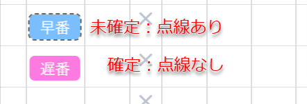 未確定のシフトは、シフトの周りに点線が表示された状態です。