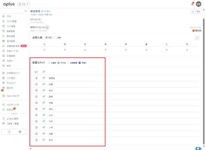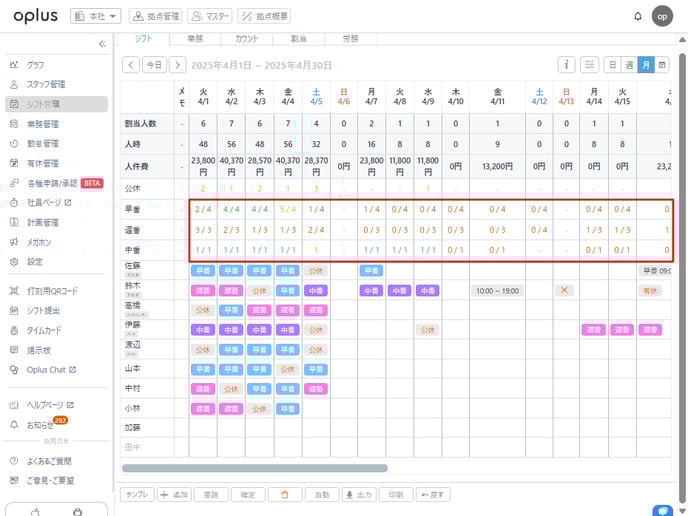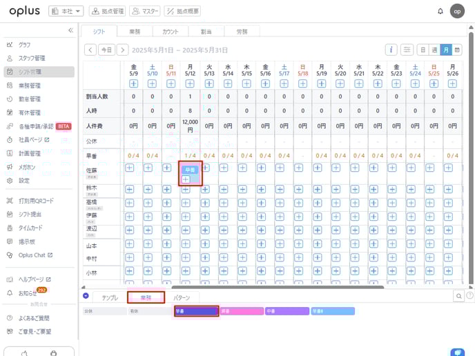 業務管理の設定完了後、シフトを割り当てていきます。