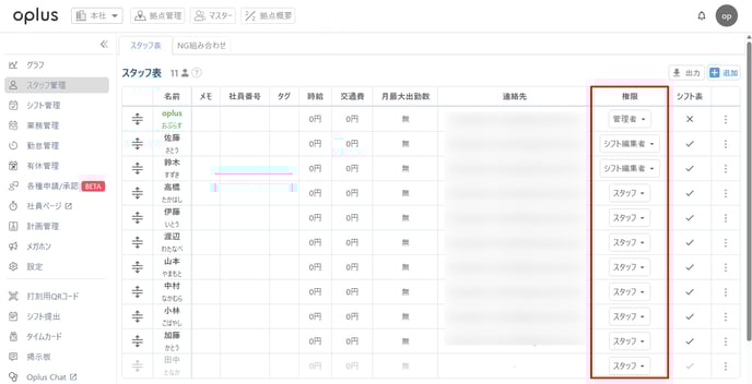 ・「スタッフ管理」にて個人情報の閲覧や変更