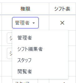 ・スタッフ管理画面にて権限欄のプルダウンを選択