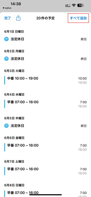 └デフォルトのカレンダーにシフト情報を同期することが可能です。
