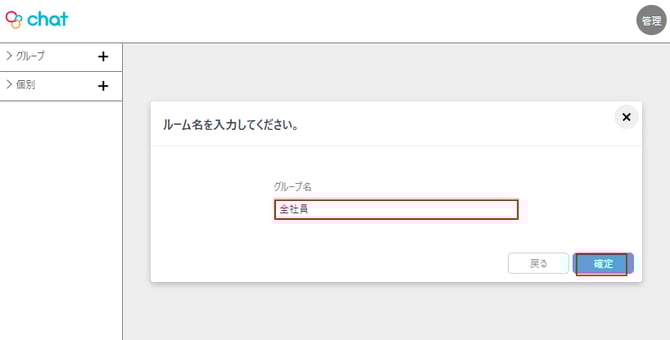 ・ルーム名を入力、確定をクリックする