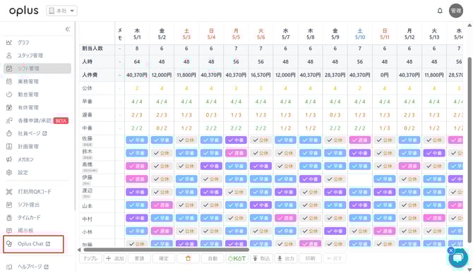 ・メニューバーにある「Oplus Chat」をクリック