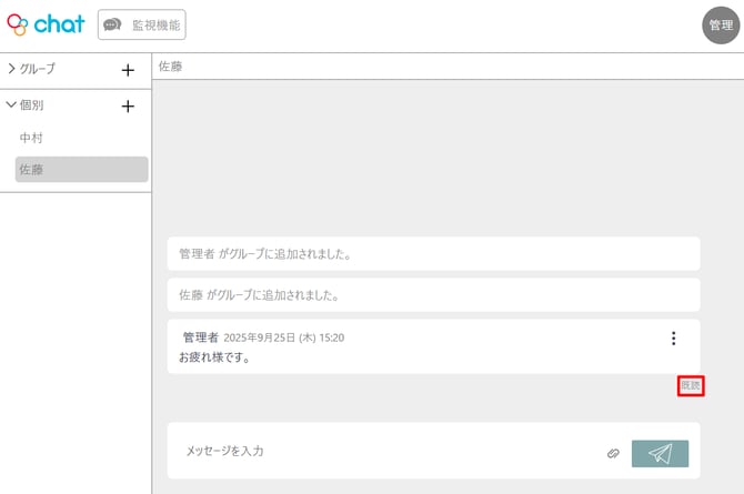 相手が既読するとメッセージ右下に既読と表示されます。