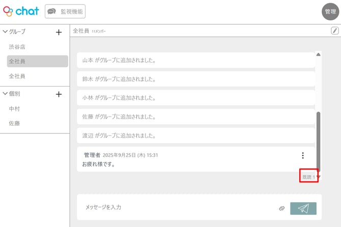 グループチャットルームの場合は、何人が既読しているか表示されます。