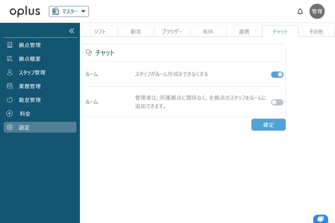 └スタッフ様同士の個人チャットルームやグループなどを作成できなくする設定となります。