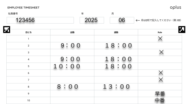 スマートフォンをお持ちではないスタッフ様やスマートフォンの操作が苦手なスタッフ様がいる場合でも、OCR機能を活用することで専用用紙にて簡単にシフトの提出が可能です。