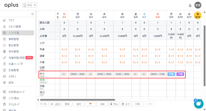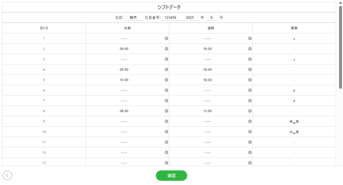 ・読み込まれたシフトに誤りがないか確認し、必要に応じて修正を行う