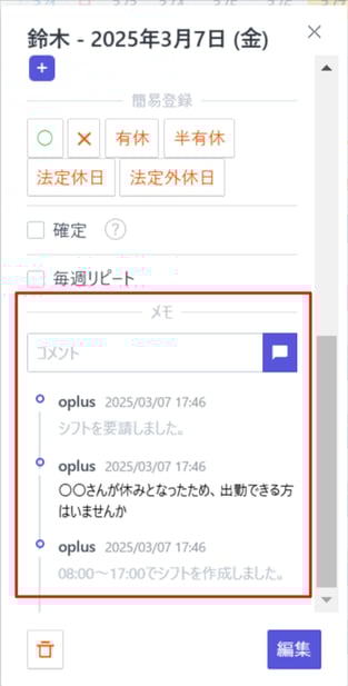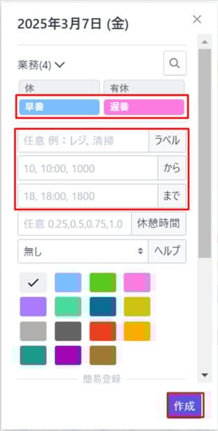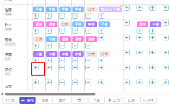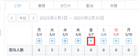 ・シフト表に表示された「+」をクリック