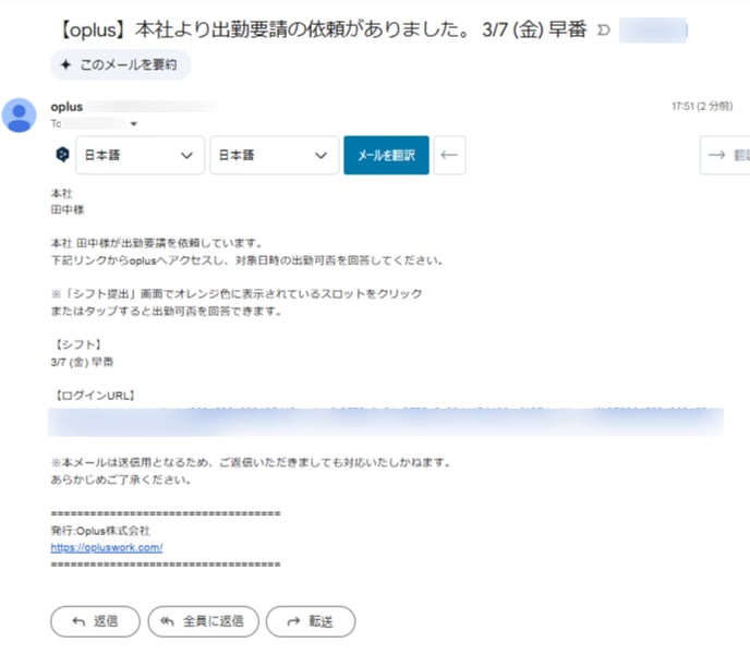 ・シフトを割り当てていないスタッフ様にのみ、シフトの入力がされ通知が送信されます。