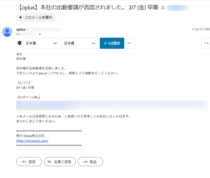 ・シフトロックを設定している期間の要請につきまして、通知は送信されますが、