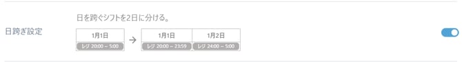 ・日跨ぎ設定:日を跨ぐシフトを2日に分ける。