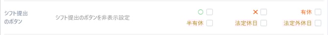 ※ボタンの非表示設定が反映されるのは、スタッフ権限のシフト提出画面のみです。管理者権限・シフト編集者権限のシフト提出画面には反映されません。