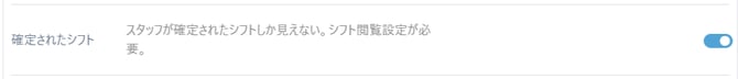 ・確定されたシフト:スタッフが確定されたシフトしか見えない。シフト閲覧設定が必要。
