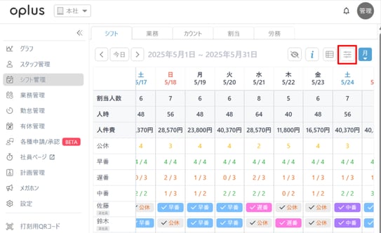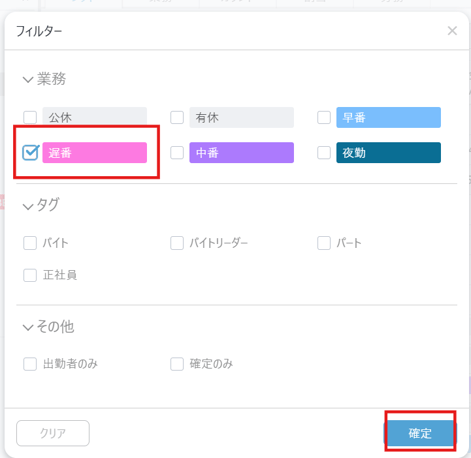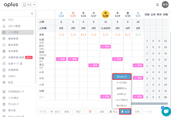 フィルターとダウンロード/インポート機能を活用し、業務を使用したシフトを一括して変更することが可能です。