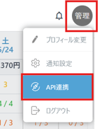 ・画面右上の名前の丸いアイコン>「API連携」をクリック