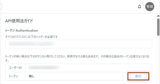 ※トークンが表示されない場合は、「発行」ボタンをクリックしてください。