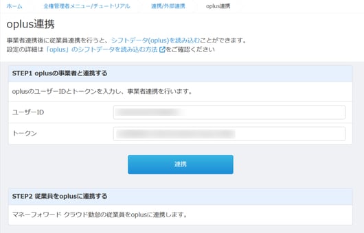 oplus側のユーザーIDとトークンをマネーフォワード クラウド勤怠に登録します。