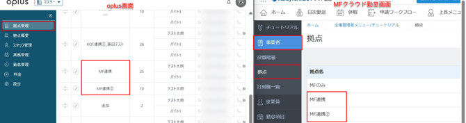 ・oplus「拠点名」とマネーフォワードクラウド勤怠「拠点」が完全一致しているか