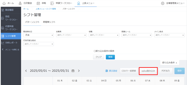 ・シフト管理画面の「oplus読み込み」をクリック