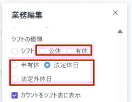 下記を選択したシフトは連携対象外です。